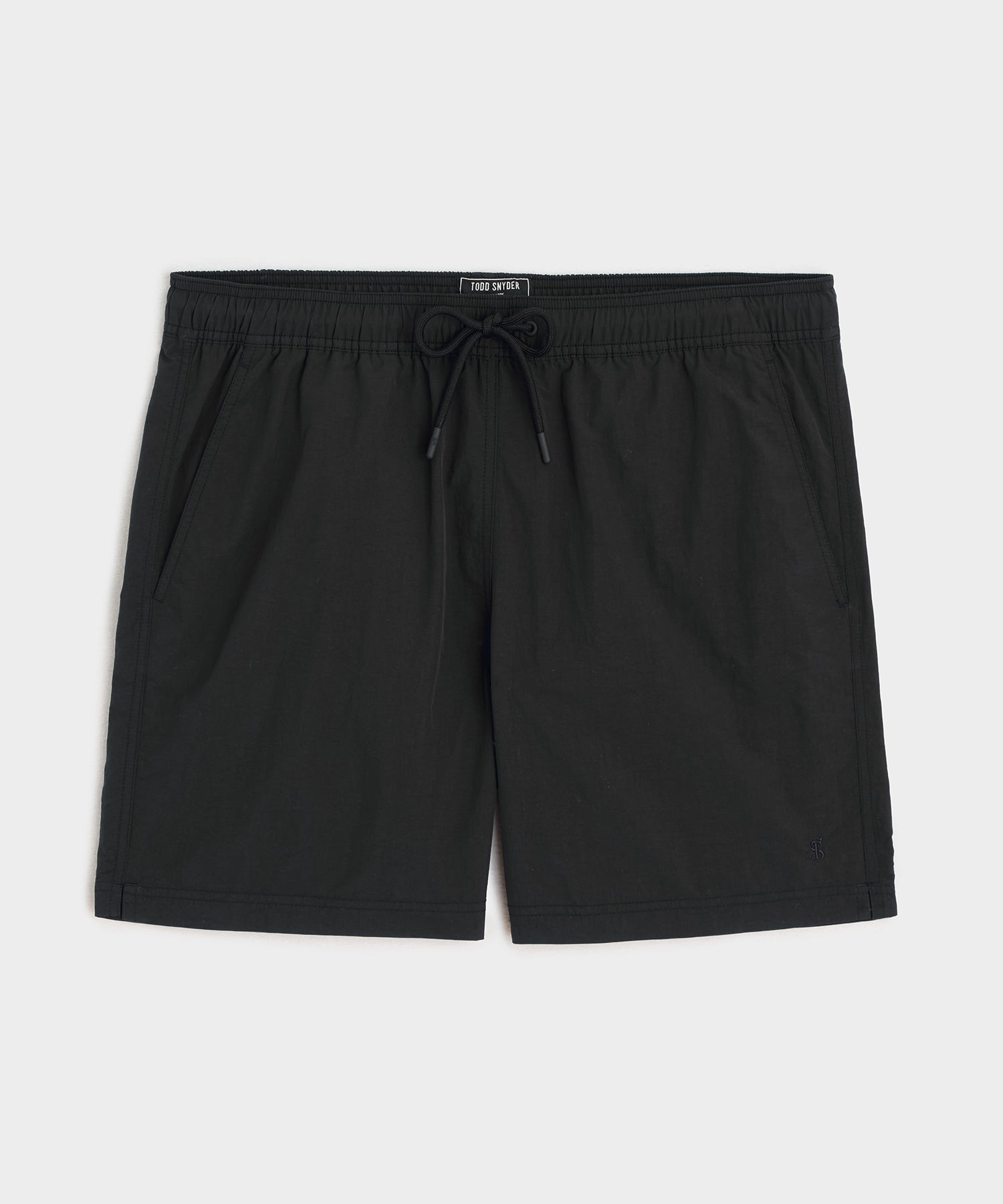 Our pull-on surf short. known as the Montauk. is a luxe upgrade on a classic board short or “baggie.” made from a quick-drying Portuguese fabric with a gently crinkled look and feel and a slight sheen to it. Design details include an elastic drawstring waist. fine mesh liner. a self-draining back pocket and a key holder — so you can safely secure your car keys before hitting the surf. These hit at mid-thigh. and are intended to look equally chic whether you're on land or out on the water.