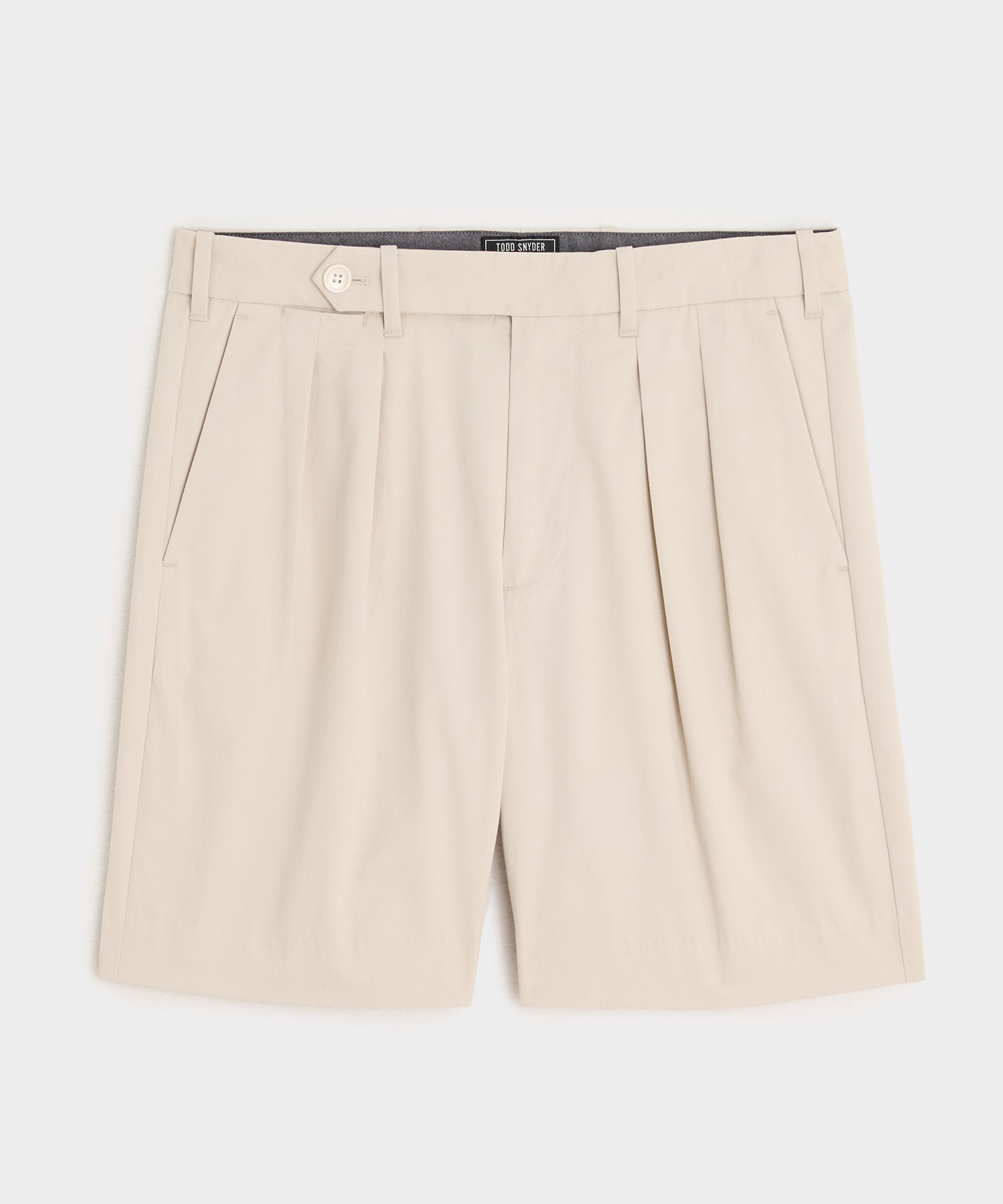 Our Pleated Tab Short is inspired by our bestselling Wythe Trousers. with a modern. oversized but tailored fit. The silhouette features a belt loop waist with an extended tab closure. and the volume up top is kept in check with double reverse pleats (which face out. away from the fly). A mid-length 7” inseam and a slightly taller rise gives these a classic feel. and they're versatile enough to wear them higher on your waist or lower on your hips. They're made from a handsome Italian cotton fabric with just a hint of stretch in it. for comfort. Because of their tailored details. these shorts can dress up a casual look or dress down a formal one — in other words. they're perfect for beach weddings and other summer events.