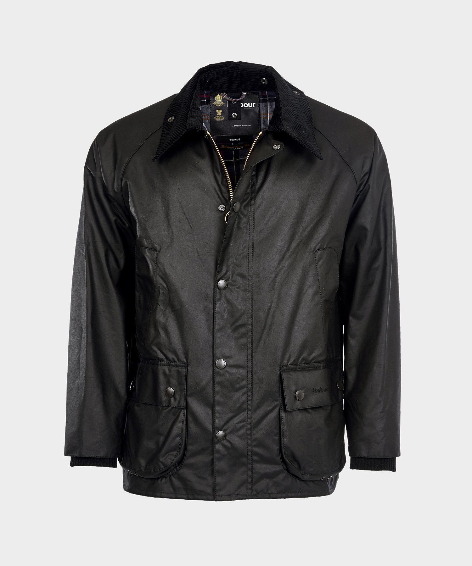 The classic elements of a Barbour jacket are all included. with a brass two-way ring-pull zip and studded 'Stormfly' front. two large bellows pockets and two moleskin-lined handwarmer pockets. and the traditional corduroy collar with studs for a hidden throat flap. Now a classic. the practicality and simple style of the Bedale remains popular with all ages.