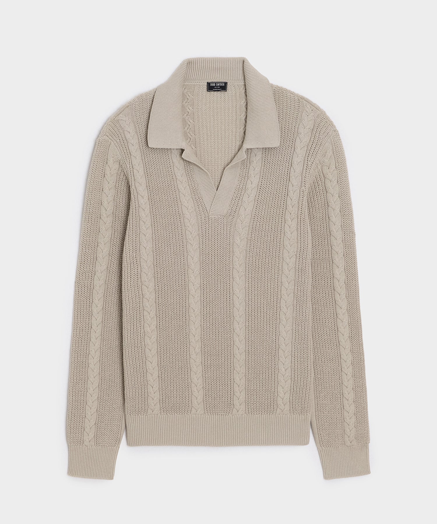Our bestselling Montauk Polo — named for its buttonless Johnny collar — has a classic fit. Here. it's knit from a remarkably lightweight organic cotton yarn. Typically. pure cotton (while cool and plush) makes for heavy sweaters that sag; our Beechwood cotton is specially spun to keep it airy and let it hold its shape. The thick cable stitch adds a subtle texture. and the yarn's year-round weight and breathability make this the perfect transitional piece.
