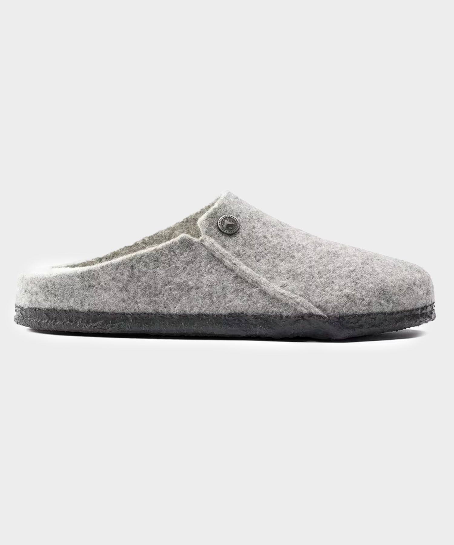 The BIRKENSTOCK Zermatt is our first true slipper. It features our iconic cork latex footbed. and to keep you extra cozy. it's fully lined in genuine shearling that will keep your feet warm all winter long. The upper consists of soft genuine wool.