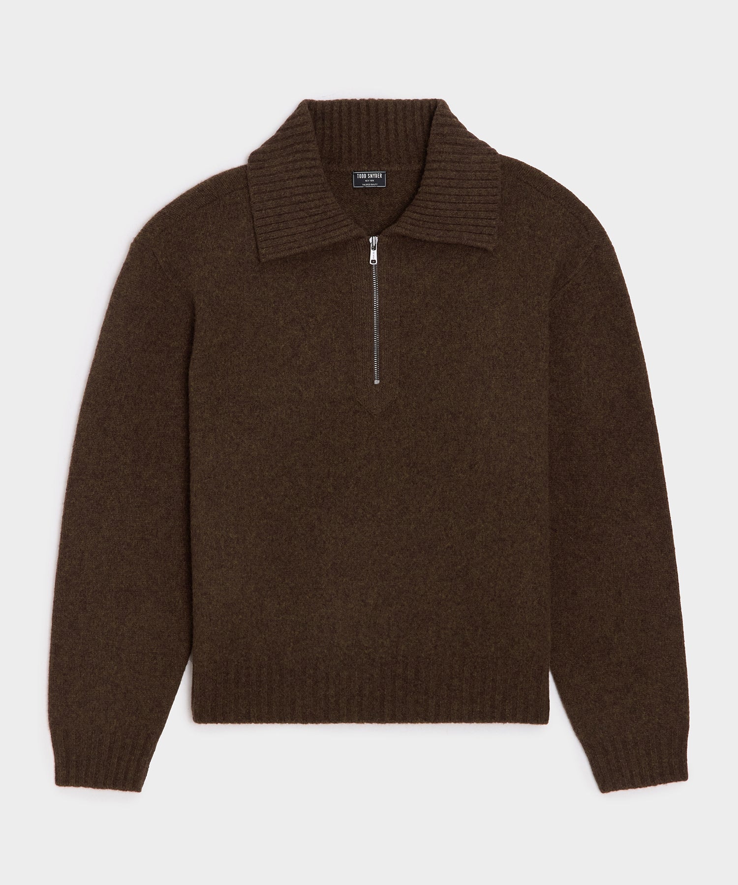 Rugged meets refined in this pullover merino wool sweater. It's made by boiling the wool. a technique that dates back to at least the Middle Ages. which agitates the fibers to create a dense. felted finish that won't shrink. This take keeps the smooth softness merino is known for but gives it the rustic. durable look and feel of a traditional Shetland sweater. The silhouette is a little bit retro inspired. with an oversized ribbed collar and a zipper at the half-placket.