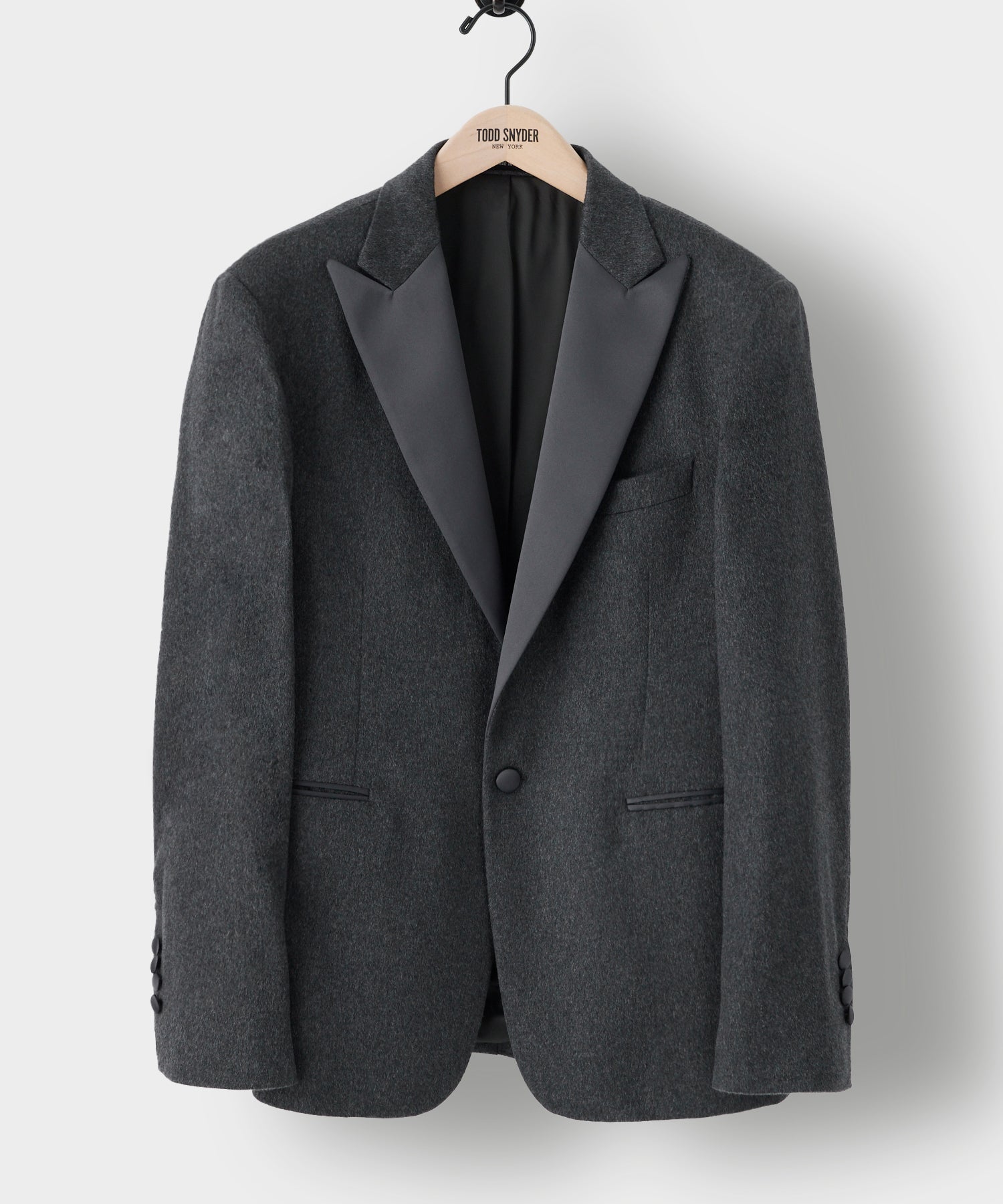 An essential for the sharp dresser. our luxurious Tuxedo Jacket is crafted in super luxe. buttery Italian cashmere. It's a chic take on everything you love about the classic: modern. impeccable tailoring with a slim. tapered fit and a natural shoulder. Premium details include a wide satin peak lapel and genuine black horn buttons. Whether you go black tie and pair this with the matching Tuxedo Pants or treat it as a stand-alone piece for other formal looks. it's a timeless. versatile choice for any special occasion — especially if you add one of our dress shirts and a bow tie to the mix.