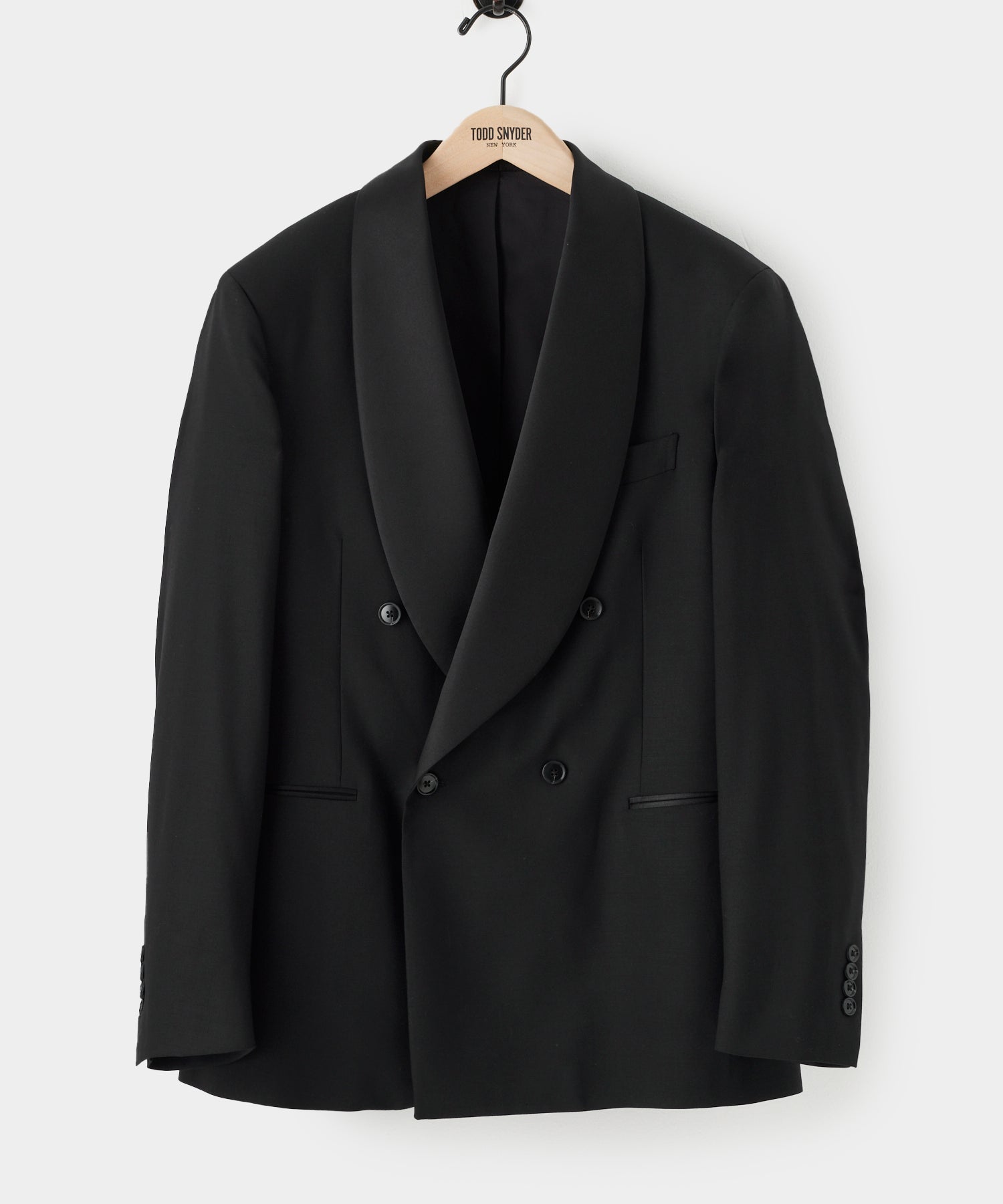 An essential for the sharp dresser. our luxurious Tuxedo Jacket is crafted from a super luxe. buttery Italian wool with a hint of stretch for comfort. This double-breasted take is a chic update on everything you love about the classic: modern. impeccable tailoring with a slim. tapered fit and a natural shoulder. Premium details include a wide satin shawl lapel and genuine black horn buttons. Whether you go black tie and pair this with Tuxedo Pants or treat it as a stand-alone piece for other looks. it's a timeless. versatile choice for any special occasion — especially if you add one of our dress shirts and a bow tie to the mix.