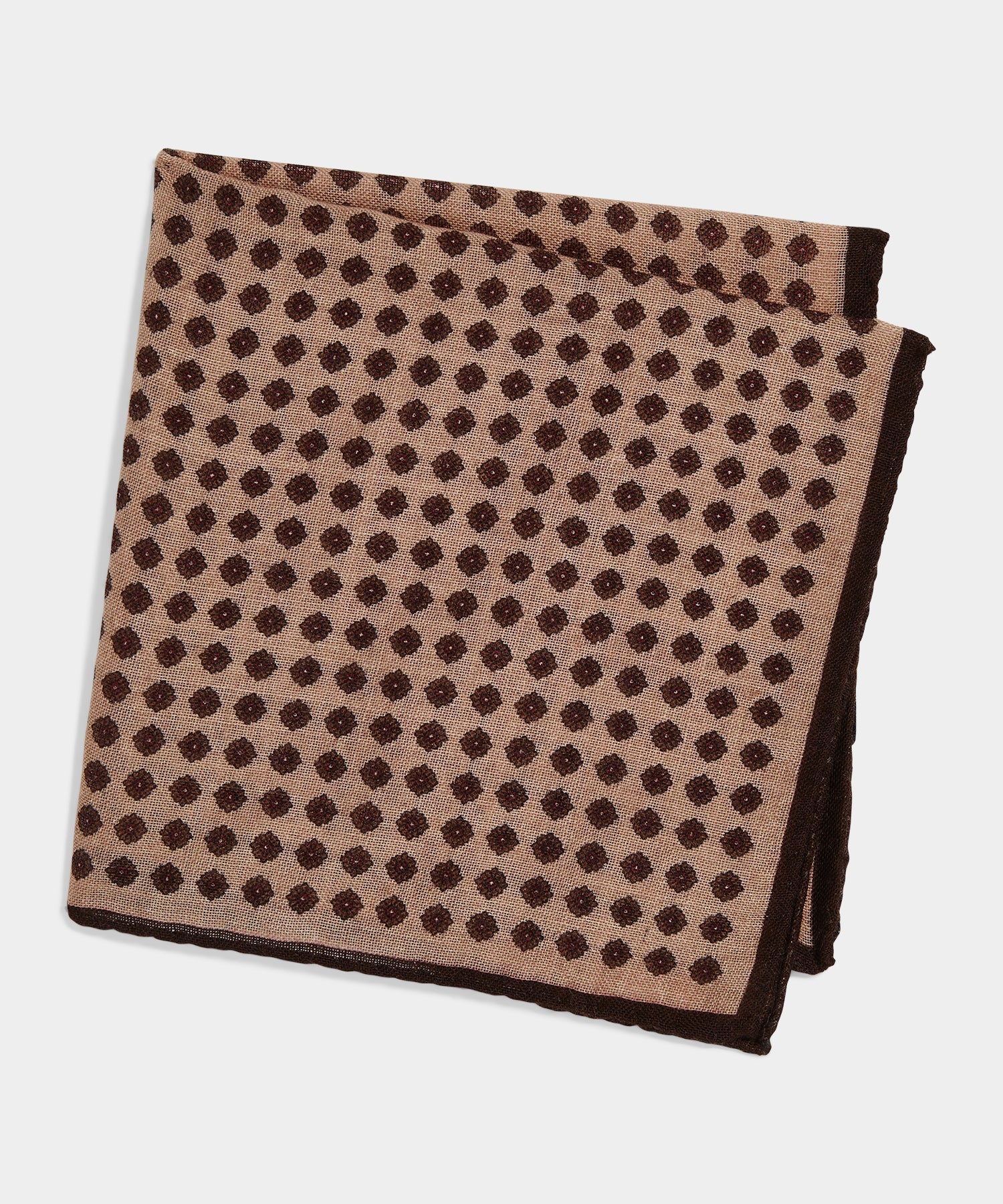For a dash of old-school cool. nothing beats a pocket square — chic but unfussy. they're the perfect finishing touch for any suit. This one is made from a soft wool that's light enough to wear year-round. in a timeless floral pattern. and comes to us from the renowned experts at Mantero. Pro tip: when it comes to pairing your pocket square and tie. try to pick one with an accent color that matches your tie's base shade.
