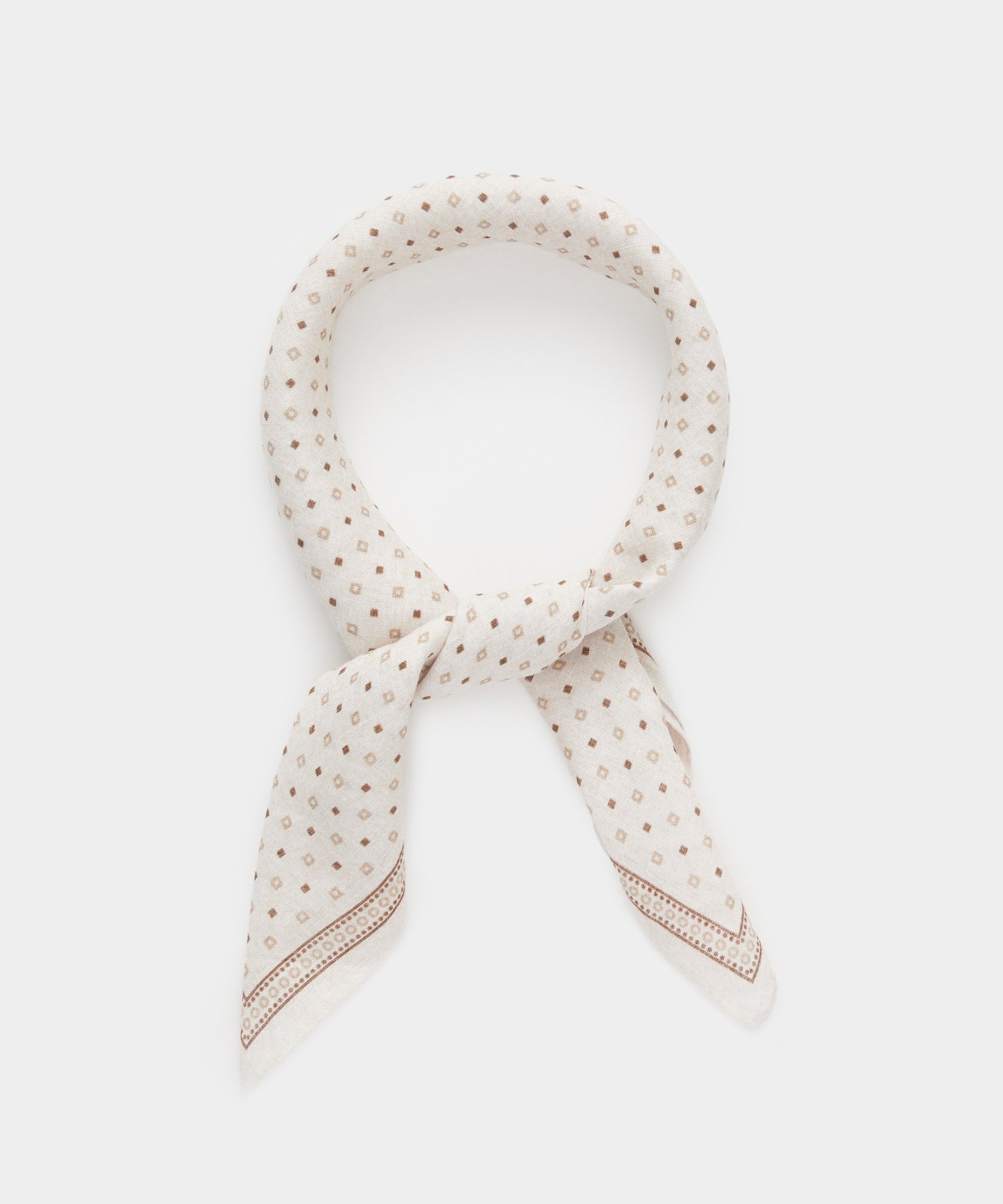 Elevate your look with our Italian linen neckerchief. This tailored piece adds a touch of sophistication to any outfit. Perfect for a suit or as a statement accessory. Try wearing it in different ways to create a unique and stylish look. Elevate your style with this luxurious neckerchief.