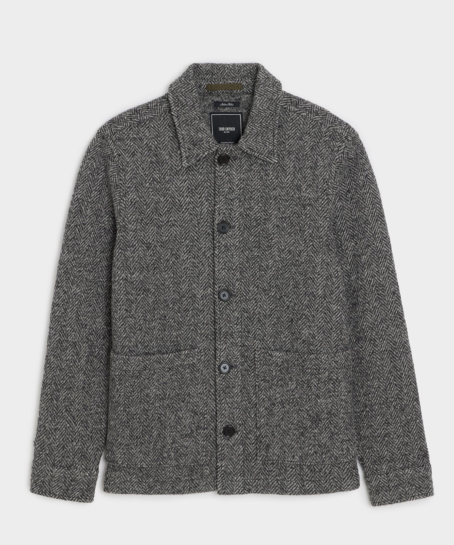A traditional chore coat gets an update in warm. durable boiled wool. The classic chore silhouette — clean lines. an easy fit and two oversized patch pockets — remains the same. The twist is in the fabric: sourced from Italy. it's light but tough. and the perfect weight to help you navigate the shift between seasons. This jacket fits true to size. with just enough room to layer. Both rugged and refined. it's versatile enough to wear anywhere. with anything. whether it's open over a button-down on sunny days or buttoned-up over a sweater when the weather's cool.
