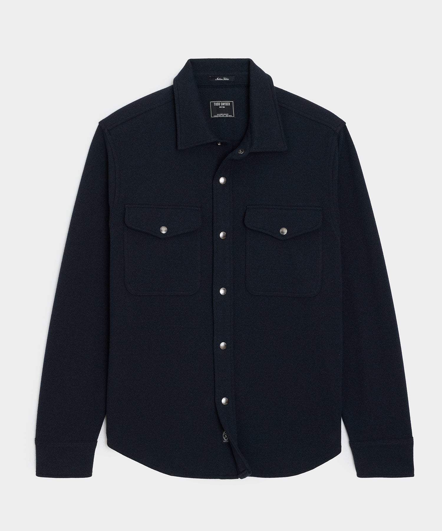 This easy shirt combines some of the things Todd loves most: a comfortable-but-chic Italian fabric and utilitarian. military-inspired detailing. It's crafted from an incredibly soft and plush stretch cotton in custom. yarn-dyed colors. The silhouette is a riff on our classic overshirts: just relaxed enough for easy layering. but tailored enough to still work all on its own. too. It features a snap-front and patch-and-flap chest pockets. as well as details inspired by classic woven shirting — single-needle topstitching. a shirt tail hem. and back yoke.