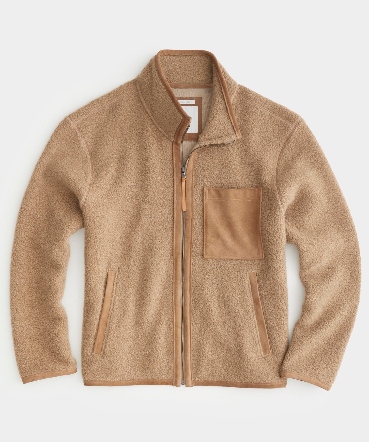 Todd's super luxe upgrade to the classic Sherpa Jacket is crafted from an incredibly soft and plush Italian wool-and-cashmere blend. The neutral. sophisticated camel color underscores the handsome handfeel: curly. non-shedding. zero sheen and woolly without being scratchy. Luxurious detailing completes the look. from the suede trim binding to the Vachetta leather pull on the two-way zipper at the front. and creates a modern spin on vintage mountaineering gear. With a generous fit made for easy layering and a cozy funnel neck collar. it's bound to become your new cold-weather. après-ski staple.
