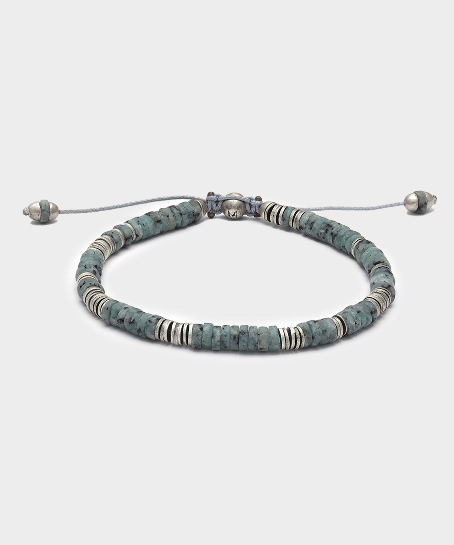 This classic design from M.Cohen gives a texture and color to your stack. The 925 sterling silver discs combined with matte turquoise gemstone to form a great pattern. and is expertly crafted by hand.