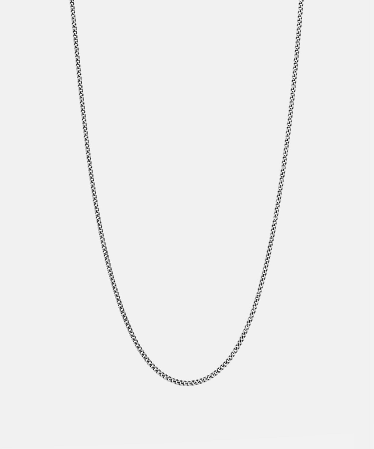 Handcrafted from sterling silver. this understated 2mm men's Cuban chain is polished or oxidized for the perfect vintage appearance. The piece can be worn alone or layered with others for an elevated yet modest accent to any look.