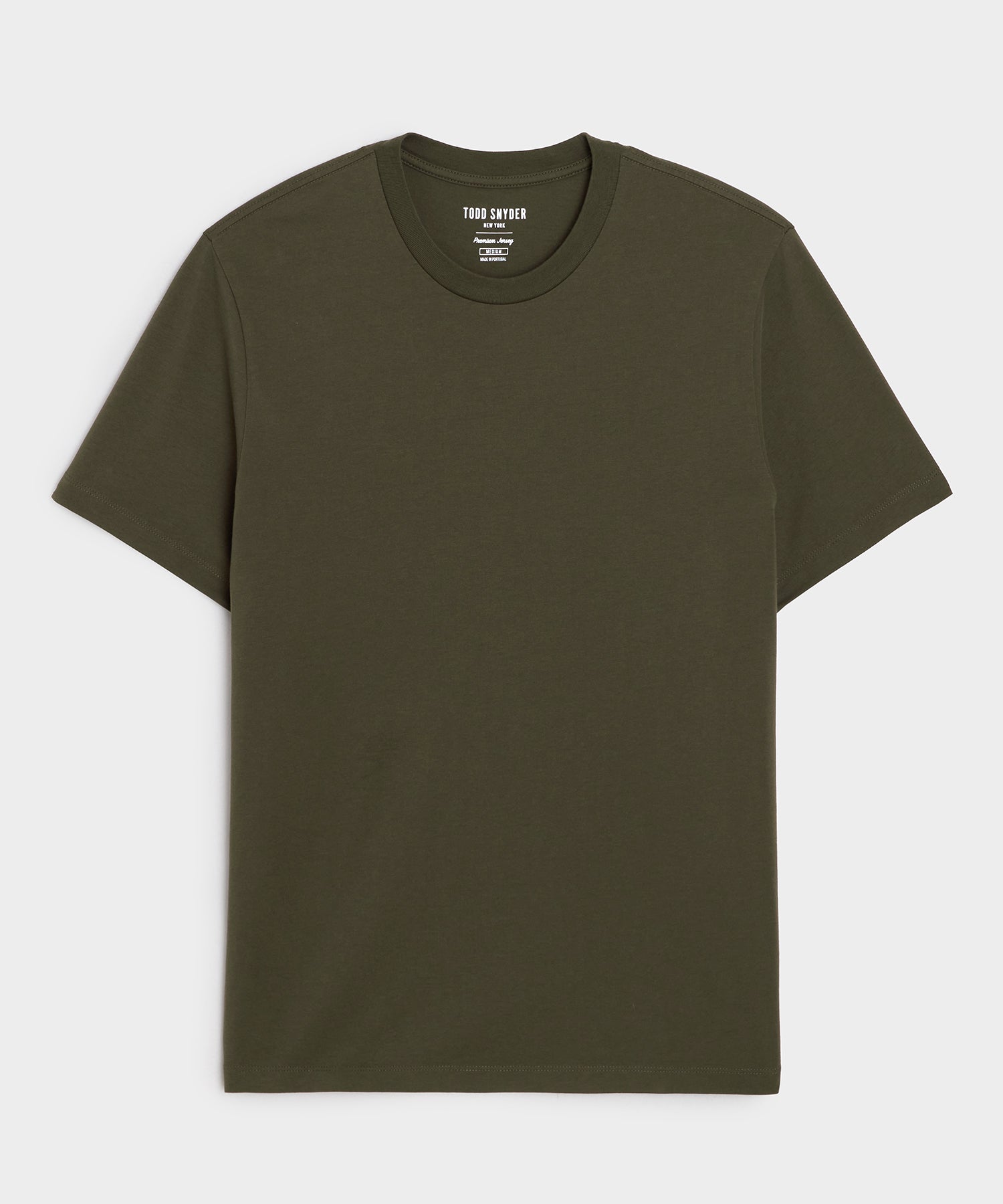 This clean. classic tee is a year-round staple. It's crafted from an all-cotton fabric we call “Premium Jersey.” Named for the largest of the Channel Islands where it originated. off the French coast of Normandy. Jersey is both solid and opaque. but also soft and breathable. Its structure gives it good drape and makes for an excellent base layer. Ours is made from piece-dyed and garment-washed Portuguese cotton. which has a smooth. dense. extra-soft handfeel. The ultimate basic. this tee is always down to smarten up a pair of jeans or get to work under a suit.