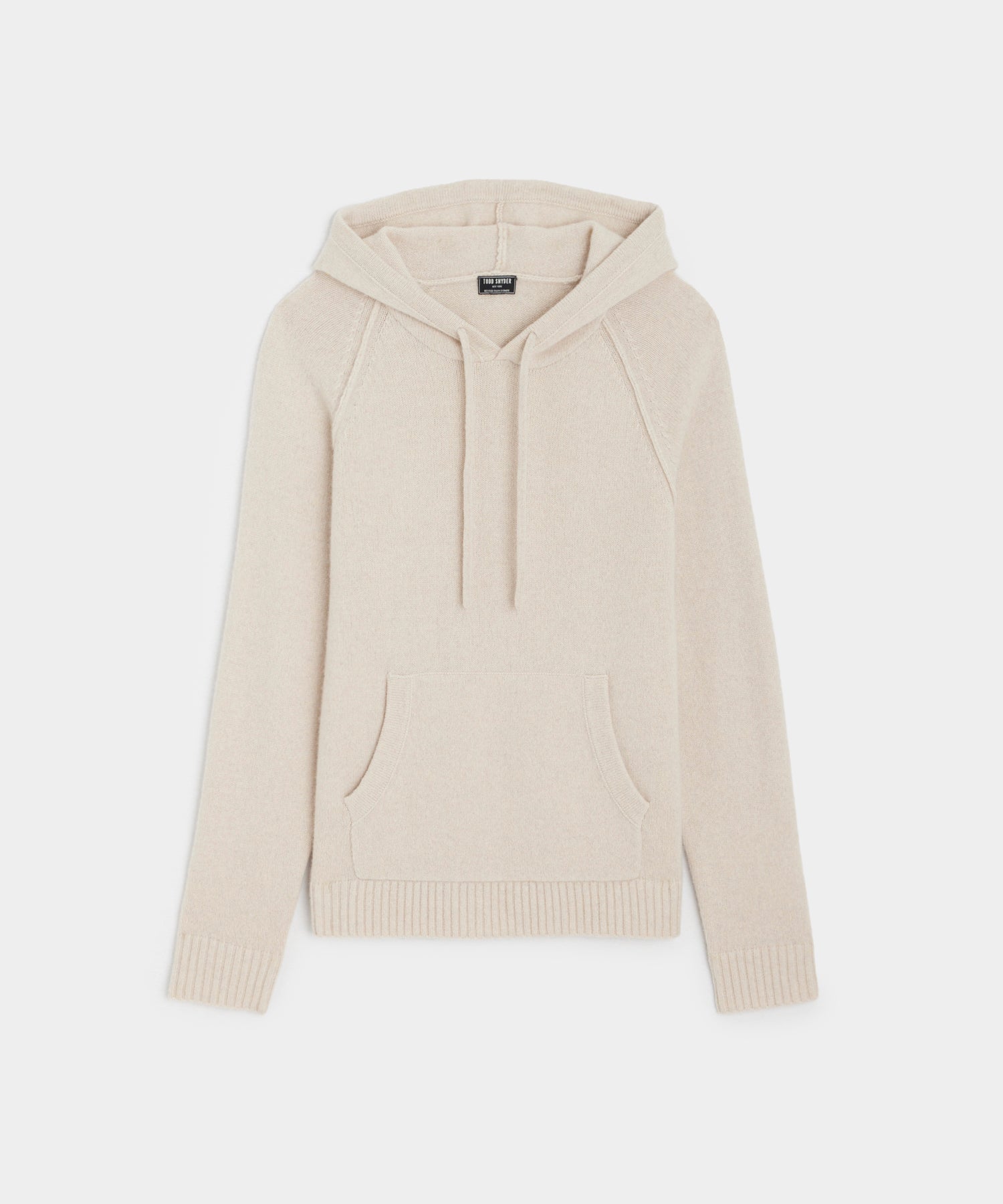 Rugged meets refined in this cashmere hoodie. a personal favorite of Todd's this season. The casual. classic silhouette has been reimagined in luxurious. recycled Italian cashmere-and-wool yarn in a 7-gauge knit — the perfect weight to wear year-round. It has an incredibly plush and lofty hand feel thanks to a special wash. and athletic-inspired details. like exposed linking at the raglan shoulders. a comfy kangaroo pocket and an adjustable hood. This sweater-meets-sweatshirt is made for anywhere and anything: layer it under a down jacket for extra warmth. wear it all on its own on foggy mornings at the beach or try it underneath a sport coat for a casual-cool look.