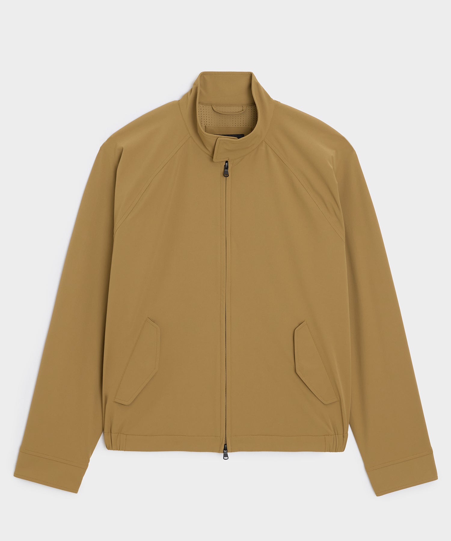 The Harrington is a style of short jacket originally worn by British truckers in the 1930s. Todd's refreshed it for the modern gentleman in a technical stretch nylon. Soft. lightweight and water-repellant. it's lined in mesh and features a storm vent at the back. The detailing — a matte black two-way zipper and silent snaps at the cuffs. pockets and throat — is exceptionally clean. making for a chic update on a workwear classic.