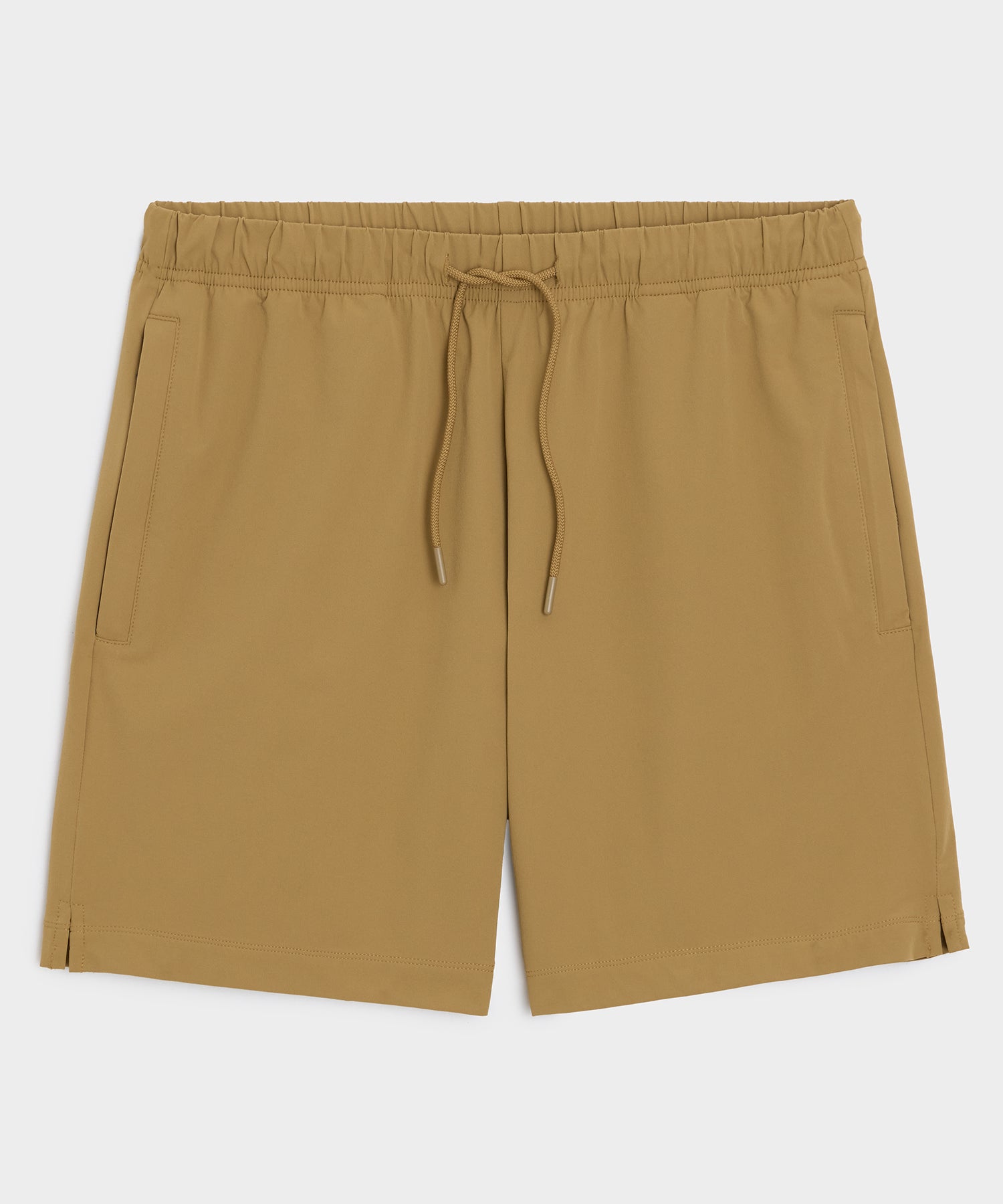 A classic short. refreshed for the modern gentleman in a technical stretch nylon. Soft. lightweight and water-repellant. it's lined in mesh. The detailing — covered zippers. self-fabric elastic and a tonal drawcord — is exceptionally clean. with a 7” inseam that hits mid-thigh. Chic and comfortable. they're just the thing to throw on for a jog. errands or lounging at home.