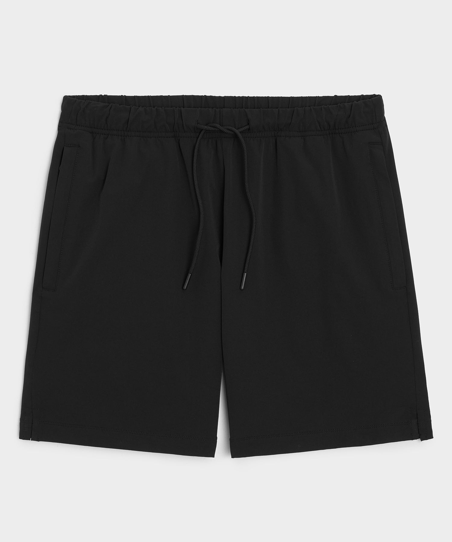 A classic short. refreshed for the modern gentleman in a technical stretch nylon. Soft. lightweight and water-repellant. it's lined in mesh. The detailing — covered zippers. self-fabric elastic and a tonal drawcord — is exceptionally clean. with a 7” inseam that hits mid-thigh. Chic and comfortable. they're just the thing to throw on for a jog. errands or lounging at home.