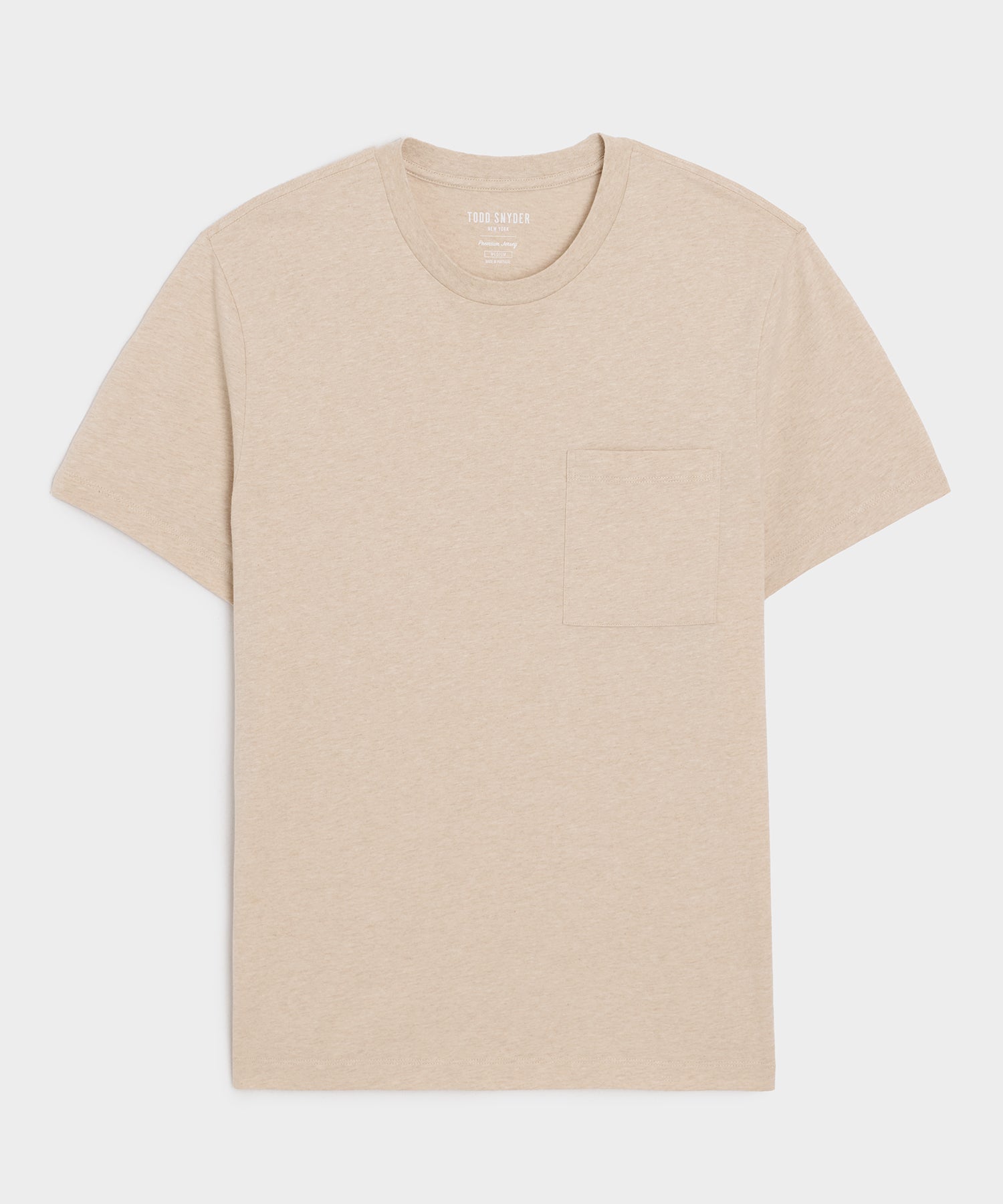 This clean. classic Pocket Tee is a year-round staple. It's crafted from an all-cotton fabric we call “Premium Jersey.” Named for the largest of the Channel Islands where it originated. off the French coast of Normandy. Jersey is both solid and opaque. but also soft and breathable. Its structure gives it good drape and makes for an excellent base layer. Ours is made from piece-dyed and garment-washed Portuguese cotton. which has a smooth. dense. extra-soft handfeel. The ultimate basic. this tee is always down to smarten up a pair of jeans or get to work under a suit.