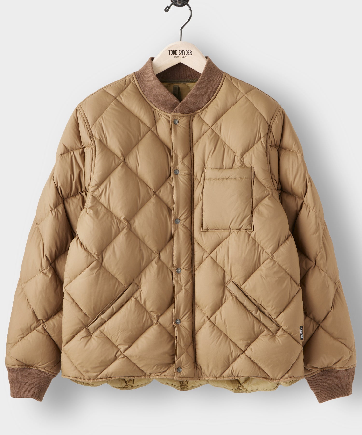 *Holding for F23* Italian Quilted Down Snap Bomber in Camel