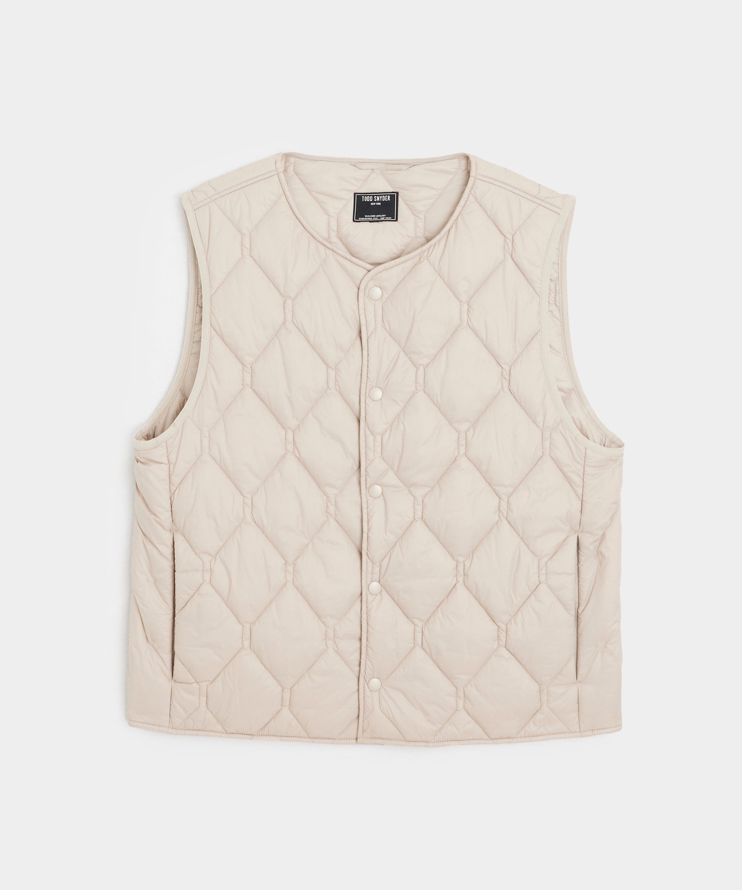 Whether you always run a little warm or simply like the option of versatility a vest provides. this sleek Gilet Vest is a perfect pick. The sleek nylon shell is filled with a poly batting for lightweight warmth. and quilted in a classic diamond pattern. Design details include zippered. on-seam hand pockets. chic gunmetal snaps. and a collar you can convert into a deeper V-neck by snapping it back. Cut on the slimmer side. you can layer it over a shirt or sweater and still easily throw a jacket on top. should you need.