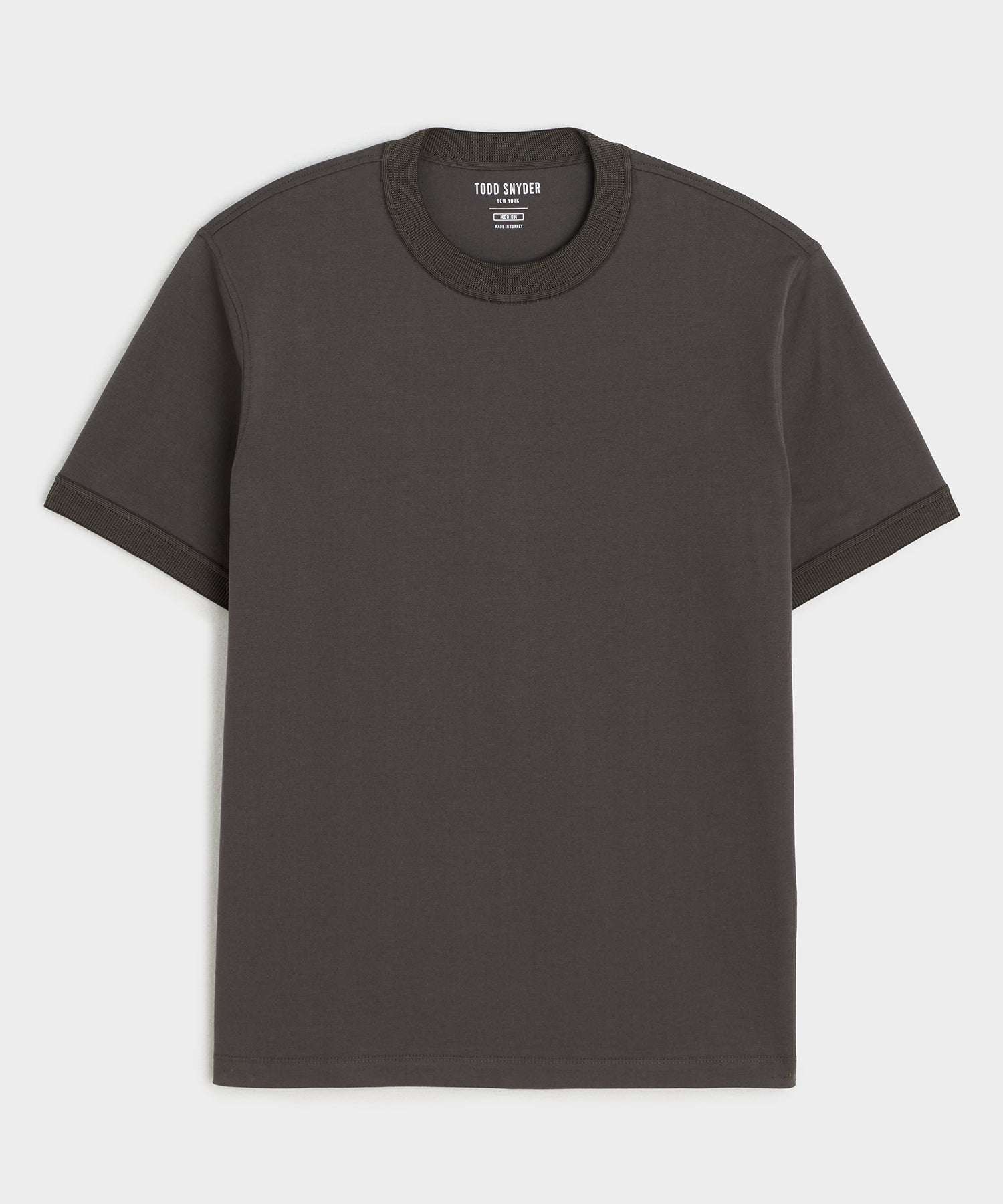 When you want the casual cool of a tee but need to step things up slightly. wear this. Crafted from lustrous. silky and super soft cotton. it has a sleek feel — the fabric is dense. but drapes handsomely. The classic fit and separate knit trim at the collar and sleeve gives this a clean look. perfect all on its own or worn under suiting.