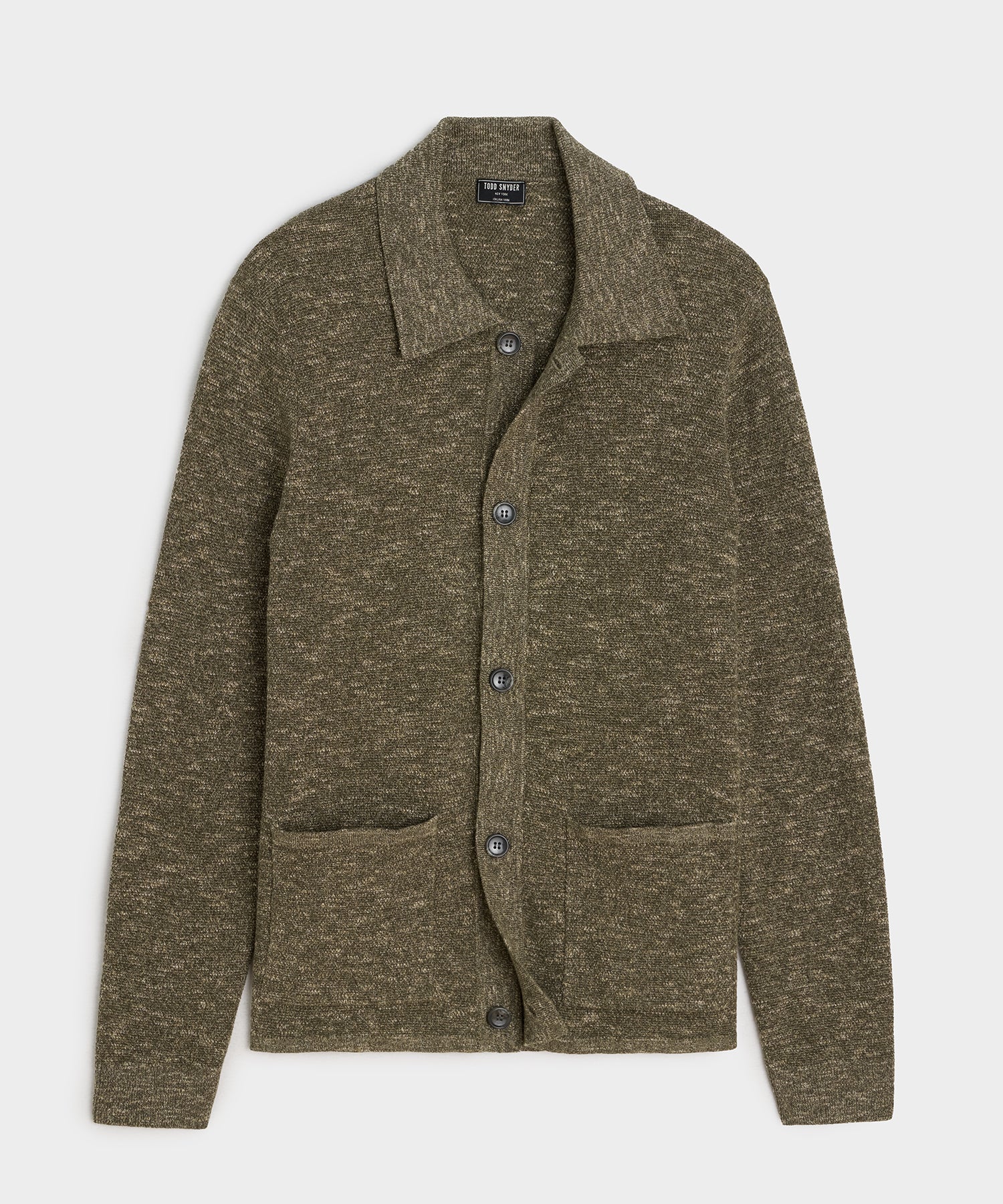 The term “pub jacket” was first coined by Murray Pearlstein. founder of iconic menswear store LOUIS Boston. to describe this cardigan-meets-chore-coat. Our Shore Pub Jacket is knit from an Italian cotton-linen yarn that's a “mouliné.” which is made by twisting two different colors of yarn together before weaving to create a chic. marbled effect. In this case. it adds flecks of white to the charcoal and green; the heathered visual texture is complemented by the slubby texture of the yarn. which is knit in a small seed stitch. With an easy fit. two hand pockets and a clean tubular hem. it's an endlessly versatile layer that's easy to dress up or down as the occasion calls for.