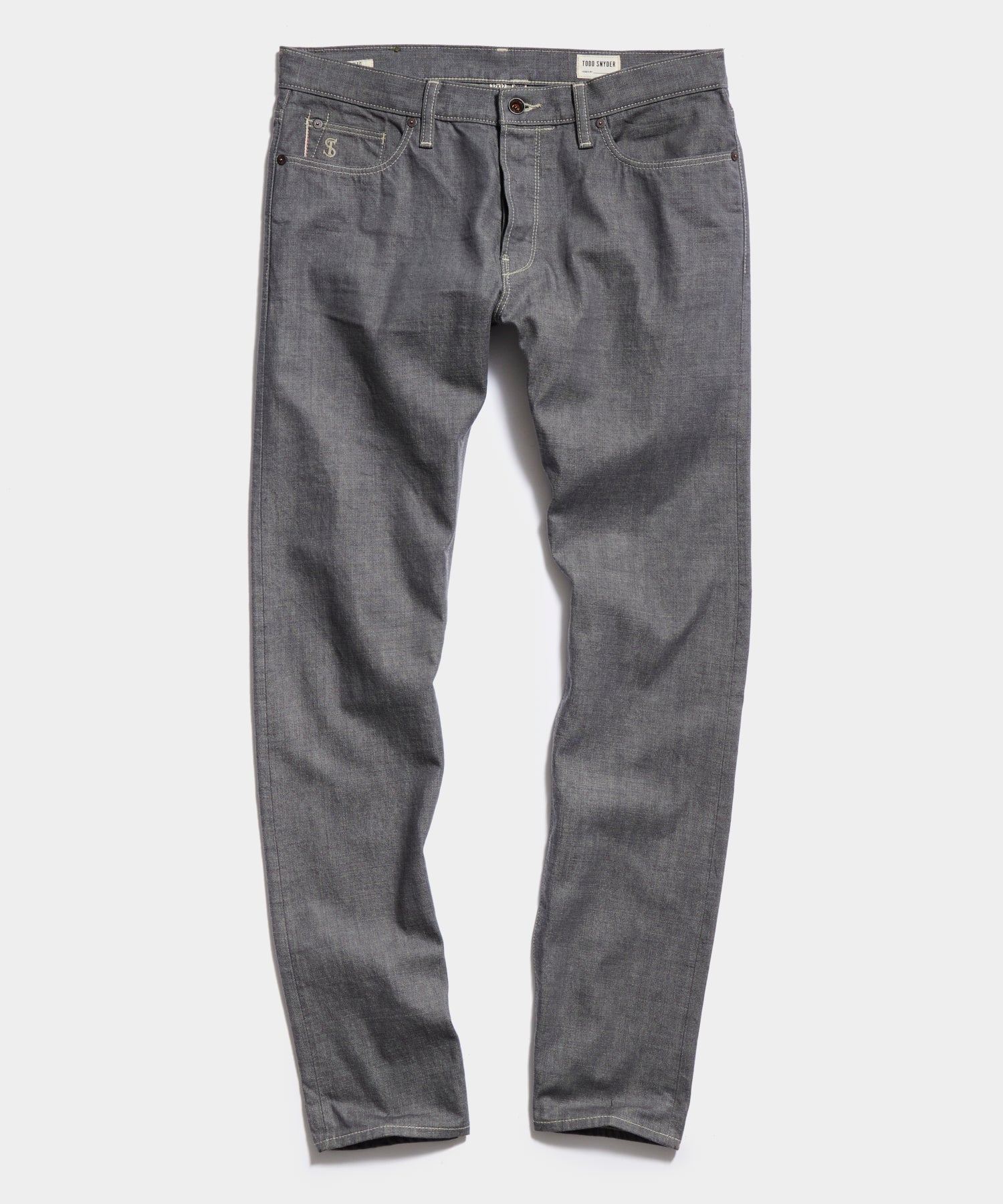 Our denim comes in distinct categories (Stretch. Selvedge and Small Batch). for the same reason that sometimes you want an artisanal sipping whiskey. and others a draft beer. The Lightweight Charcoal Denim is part of our Small Batch series. Crafted from a Japanese Selvedge denim that is spun on old-fashioned shuttle looms. this is a unique shade of dark gray that will fade and patina beautifully over time. It is also a lighter weight than our typical jean. making it a great choice for the guy who likes to stick with dark. more rigid denim through the summer. It is loaded with quality details including a shank button fly. oxidized rivets. chain-stitched embroidery. a selvedge locker loop inside the back waist and selvedge outseams. So when you turn up the cuff. you'll see the giveaway red ticking on the edge. Think of it as a rugged and more casual alternative to the way men of a bygone era wore gray flannel trousers. and pair it with a sportcoat. chore jacket or sweater polo to complete your vintage leading man look.