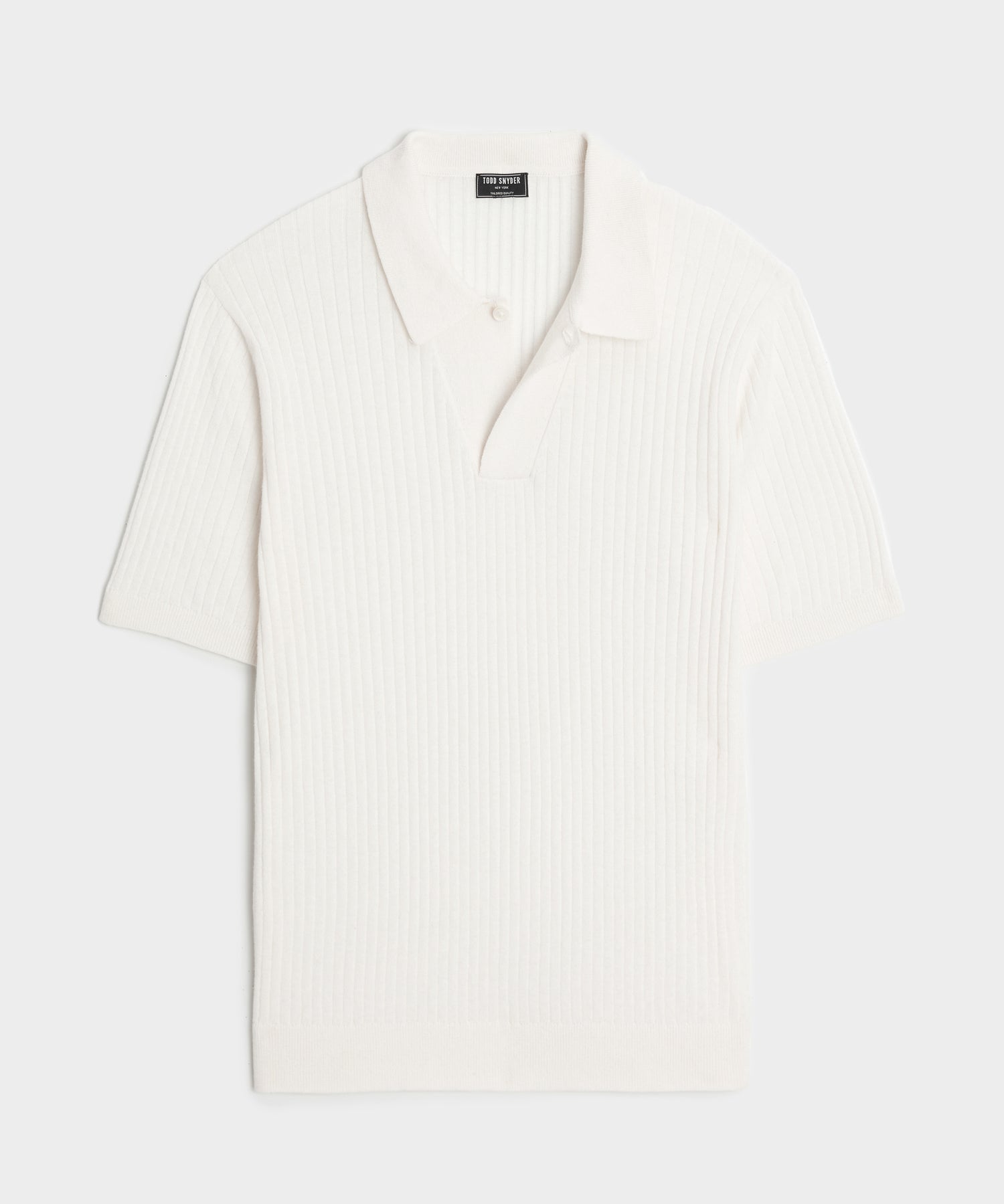 This clean polo is knit from a lightweight blend of cotton and cashmere with a soft feel and a wide rib stitch for tonal texture. The relaxed collar and wider-than-usual-placket taper into a chic point and feature a single shell button. in a spin on the more traditional polo collar.