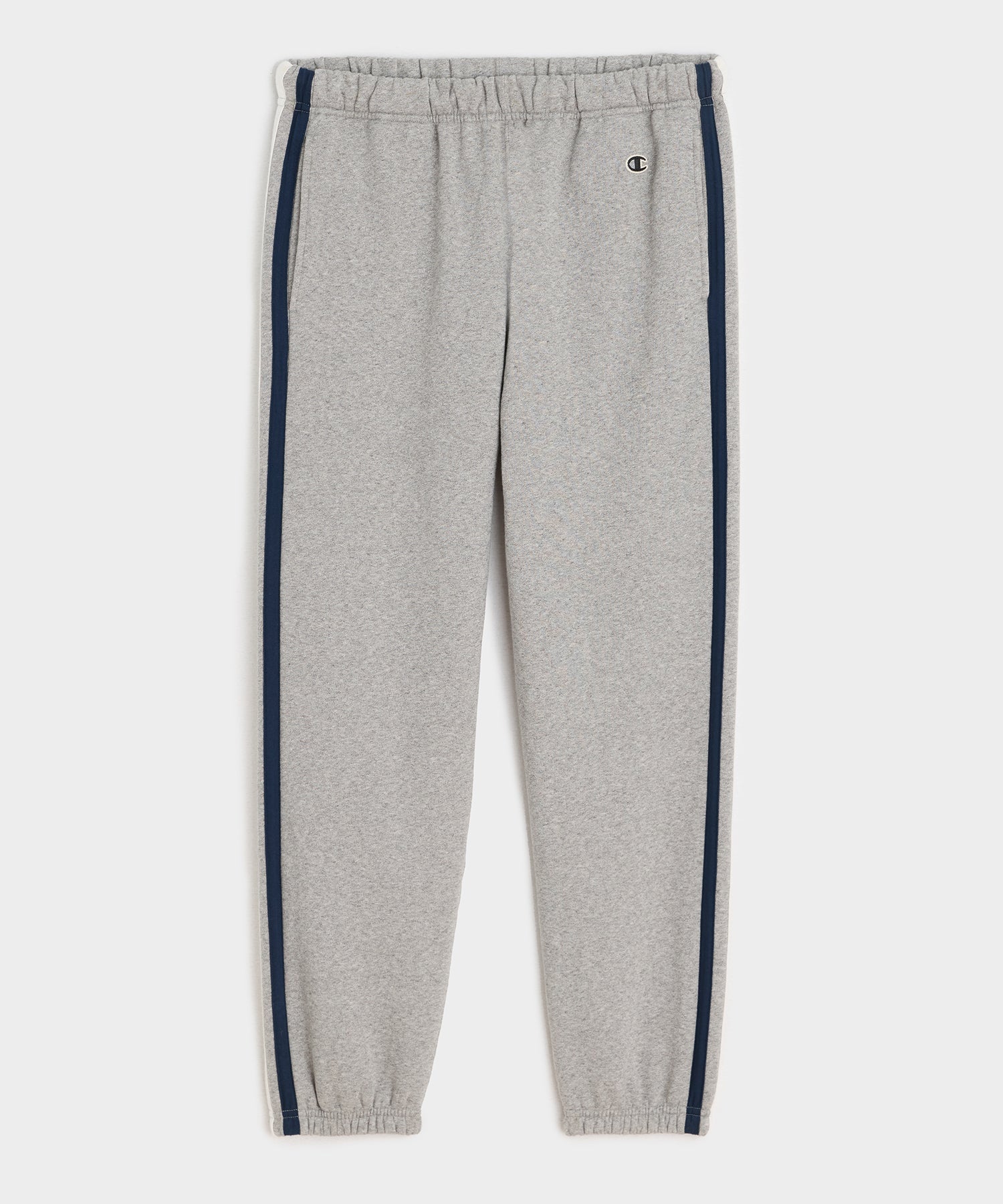These Champion Sweatpants are made from a hefty fleece that's brushed on the interior for a super-soft finish. The relaxed silhouette is inspired by some of our favorite styles from the 80s and 90s. with ample room through the leg and a little extra length for an intentionally “puddled” look at the ankle. Premium details include a concealable drawstring at the elastic waist. and an applied side stripe running down the outer leg seam — pull them on solo. or pair them with the matching Polo for a full lounge look. These are cut and sewn at WS. a family-owned factory outside Toronto that has been making sweats the old-fashioned way for decades.