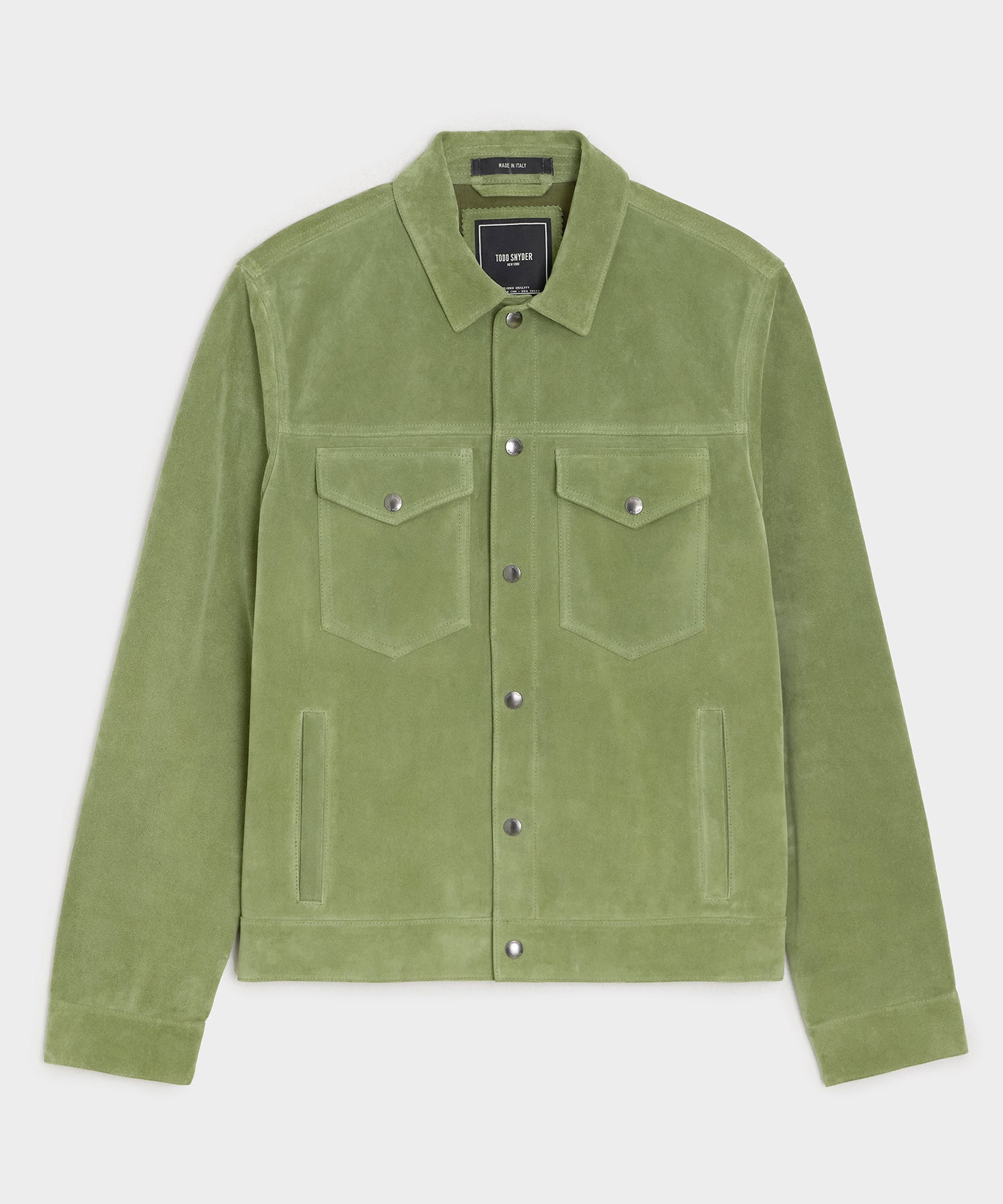 A staple that belongs in every man's closet. the Dylan Jacket is a bestseller for a reason. To create this luxurious update on a time-honored classic. Todd took the body of a vintage trucker jacket and remade it in high-quality fabrics and materials. Case in point: this rich. Italian calf suede version in chic new shade of green we call Desert Sage. The result? An iconic style reimagined for a modern sensibility with a slim. flattering fit. Whether your style leans timeless or on-trend. this exceptionally well-crafted piece fits the bill.