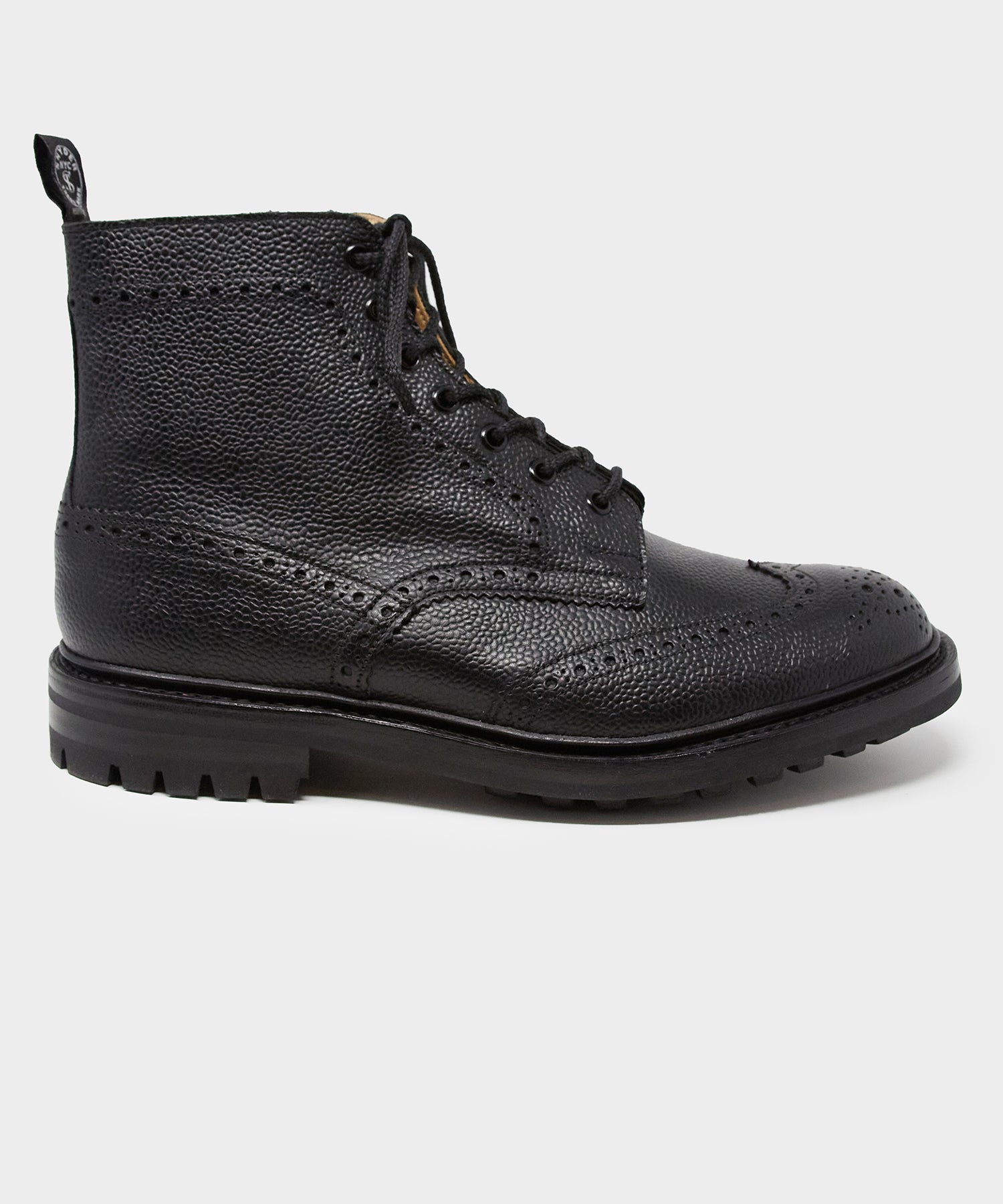 The Stow is Tricker's most iconic men's boot. Made originally as a country boot. but now worn by men all around the world across fields and cities. The Stow Derby ankle boot is instantly recognizable for its brogue patterning synonymous to Tricker's; however its strong. solid build and seven eyelets make it as recognizable. whilst by no means flashy. A half bellows tongue is folded and attached to the boot to provide a watertight seal. with the storm welt providing an additional waterproof seal between the shoe's upper and sole.